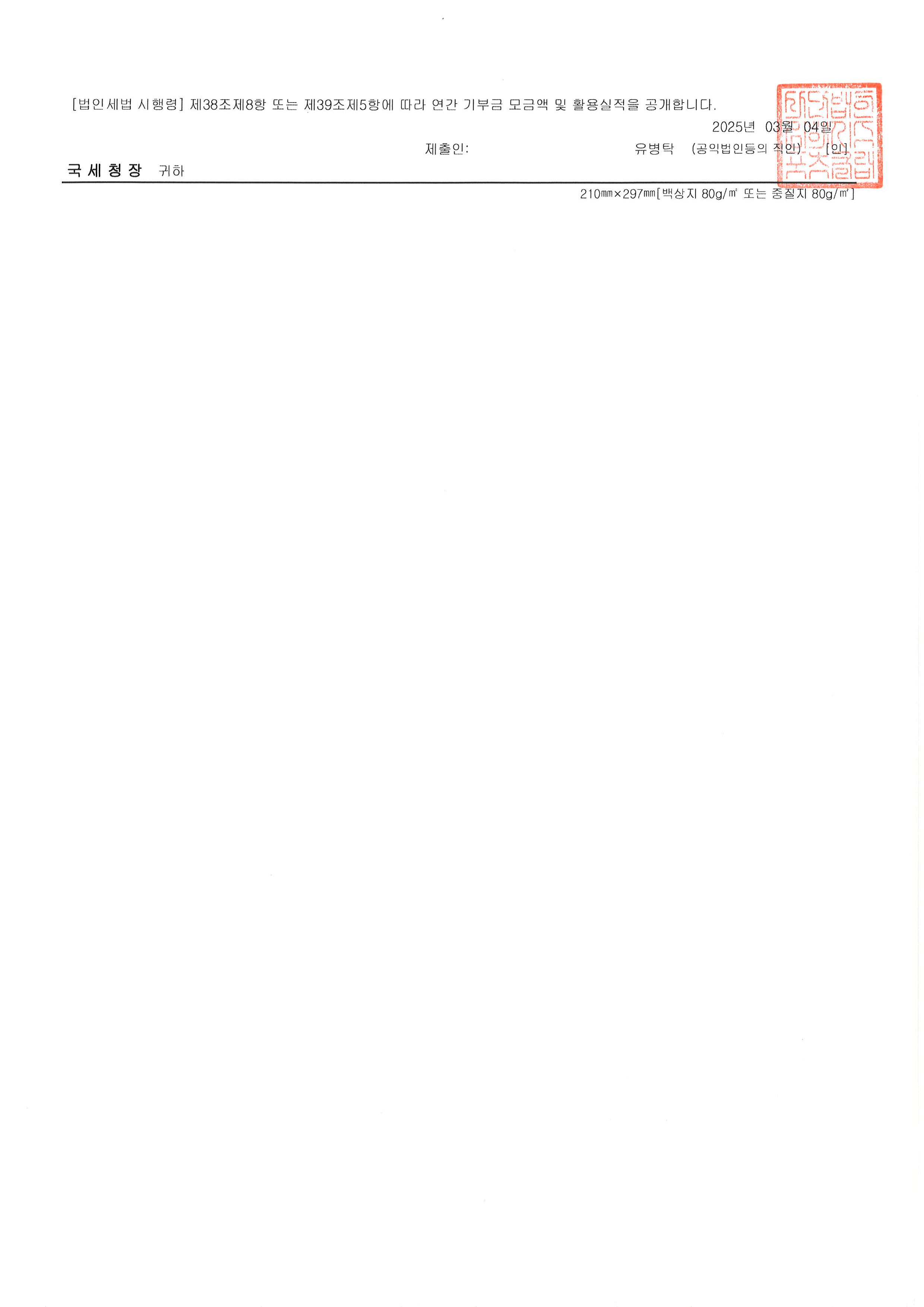 2024년 연간 기부금 모금액 및 활용실적 명세서